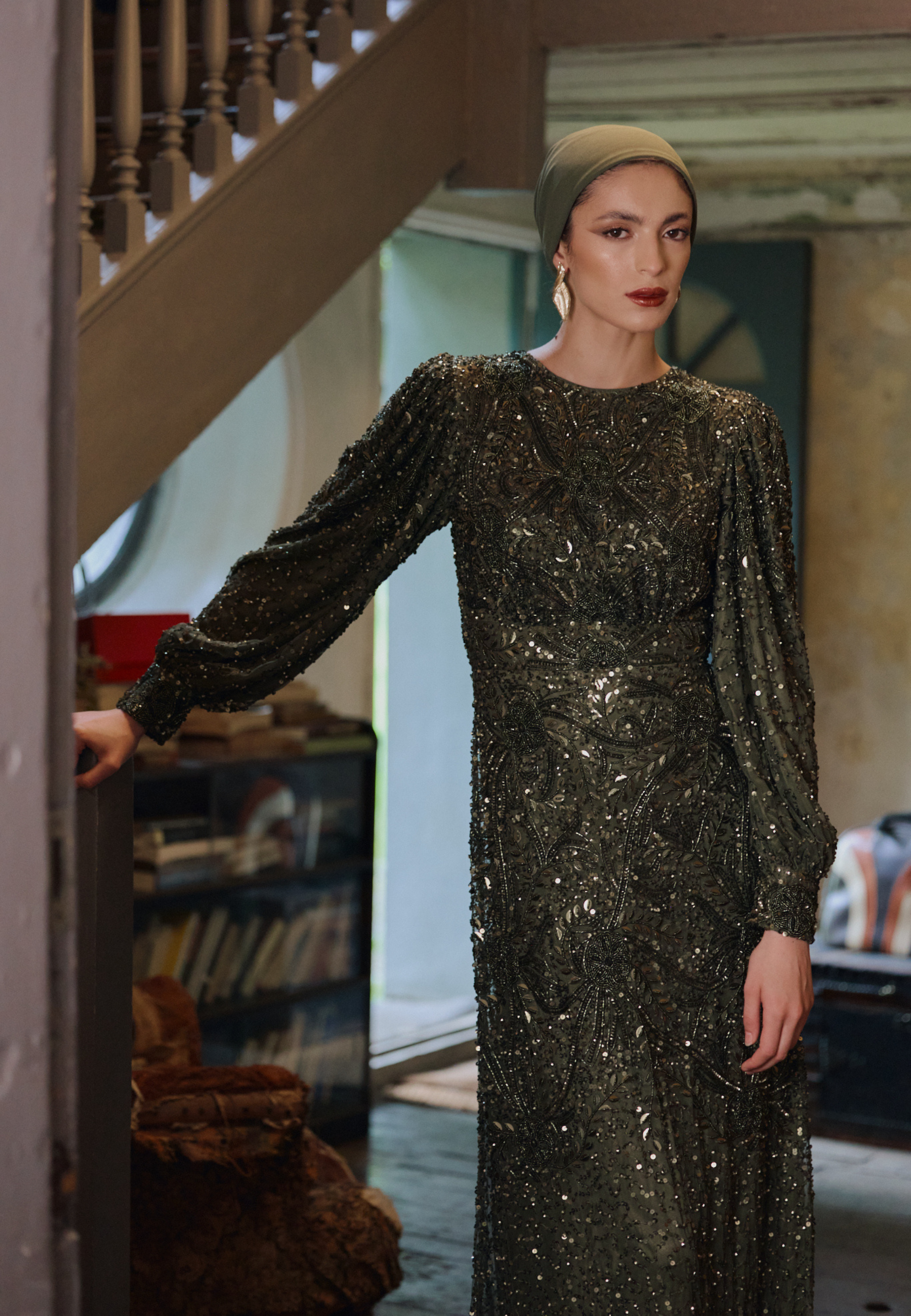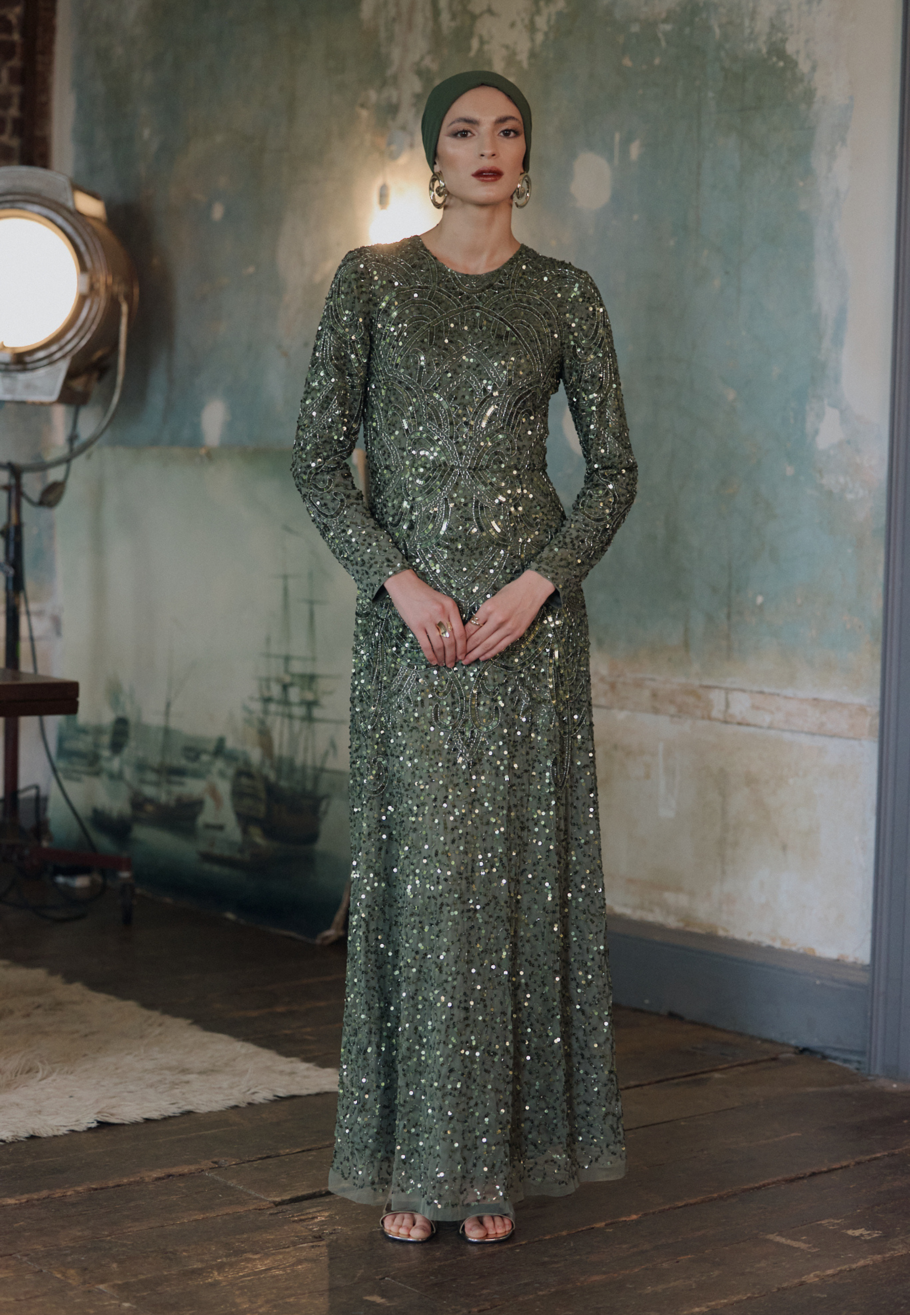 Raisa Modest Embellished Sequin Maxi Dress | MTZ250415